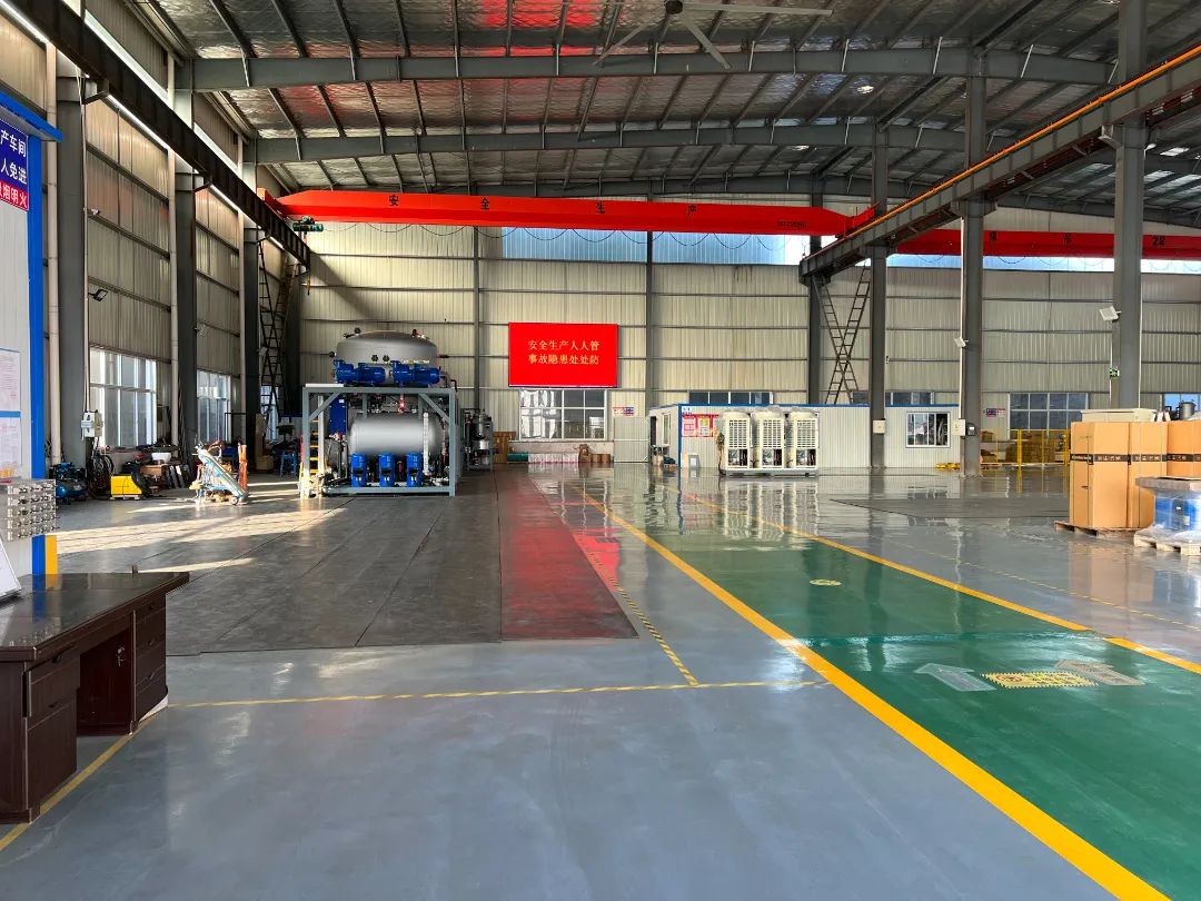 一號組裝車間參觀完畢后考察組一行來到了朗盼的二號和三號車間進行參觀。董事長鮑偉東著重匯報了我司作為高新技術企業,積極響應國家綠色低碳號召,推動城市工業廢水零排放,積極承擔起作為環保企業社會責任和目標。考察期間,董事長鮑偉東還結合實體產品展示,對公司安全車間建設、數字化設備和低溫真空蒸發器產品等進行了詳細介紹。