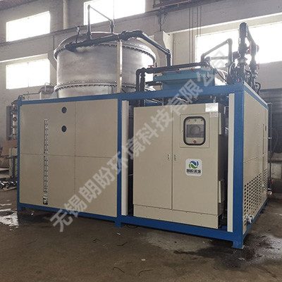 V-HP-SS系列蒸發器采用壓縮機作用于冷媒,冷媒與作為傳熱介質的純凈水產生熱交換,再通過純凈水與物料發生熱交換,安全性較高,該系統適用于物料純度要求高,安全性要求較高,常用于食品及制藥等行業,主要特點是占地緊湊,但蒸發效率相對較低,安全性較高,無泄露風險,設備結構及控制相對復雜。
